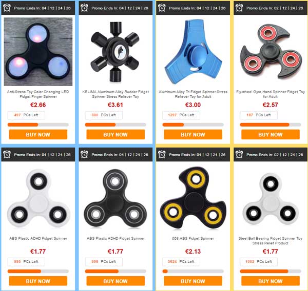 Entre los “spinners” que podemos encontrar en esta promoción se encuentran los siguientes. Existen multitud de modelos todos ellos diferentes por lo que ten por seguro que encontrarás el tuyo, el que más te gusta y lo mejor de todo con un 17% de descuento haciendo uso del cupón “GBFSpinner“.