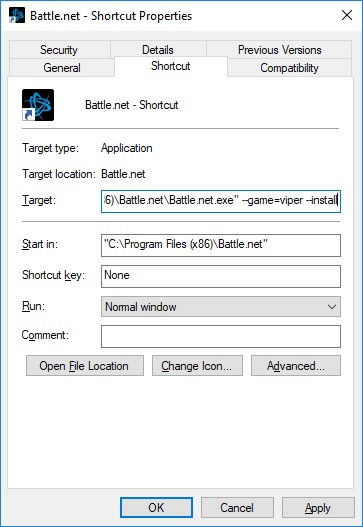 Los usuarios de Windows 7 deberán hacer un icono de acceso directo a Battle.net y agregar “–game=viper –install”. Esto también funciona para Windows 10.