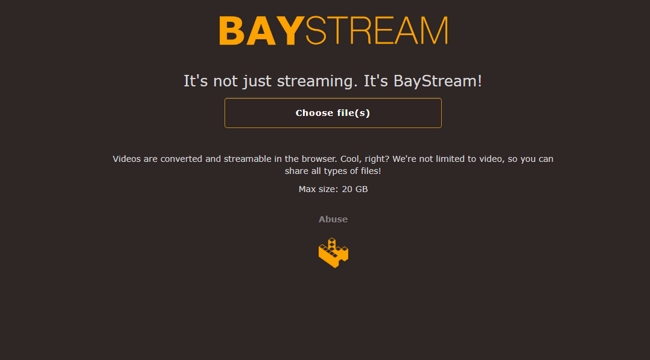 Si el usuario se dirige directamente a Baystream tiene la posibilidad de subir archivos directamente a este servicio. El sitio señala que no está limitado al video y otros tipos de archivos pueden compartirse.