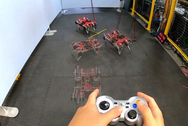 Esta simple solución le ha permitido a la unidad aprender a caminar en diversas superficies utilizando un sistema de ensayo y error.